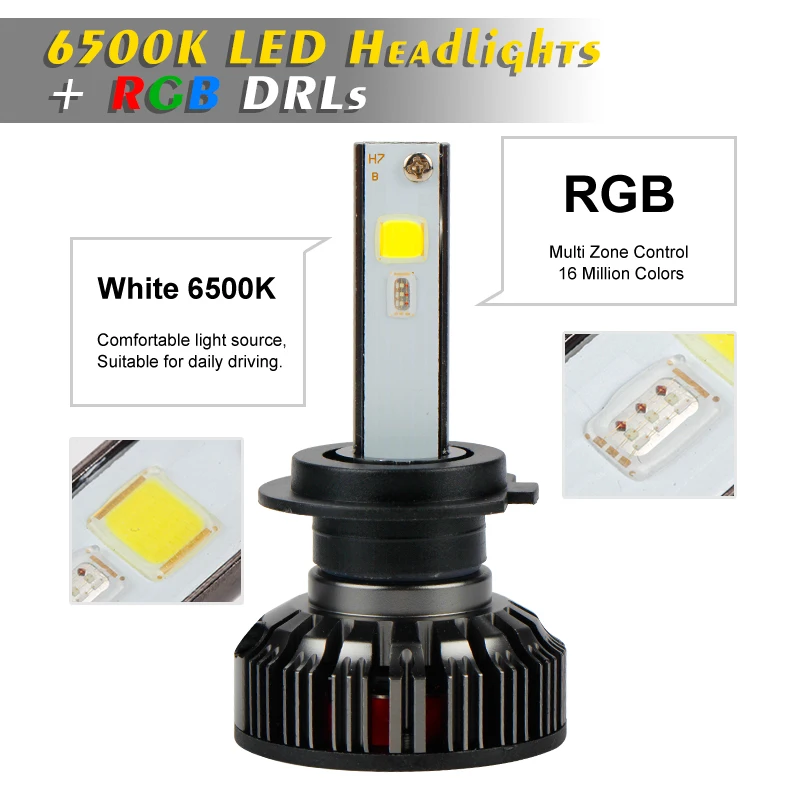 2x Car RGB LED car Headlight H1 H3 H4 H7 H8 H11 9005 9006 H13 9012 5202 LED Bulbs APP Bluetooth Control Multi-color 50W 7200LM look the best product that related to